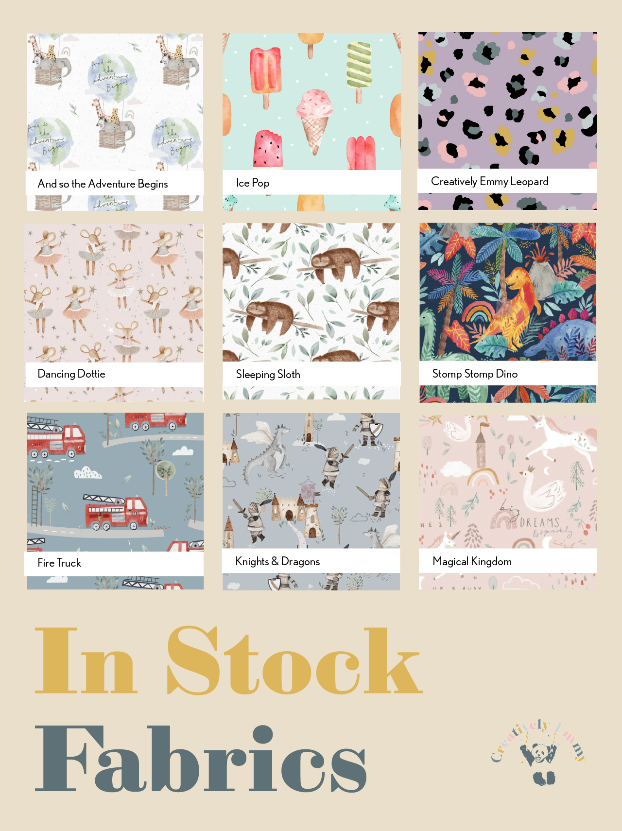 Choose your fabric from our range of in-stock or pre-order fabrics.