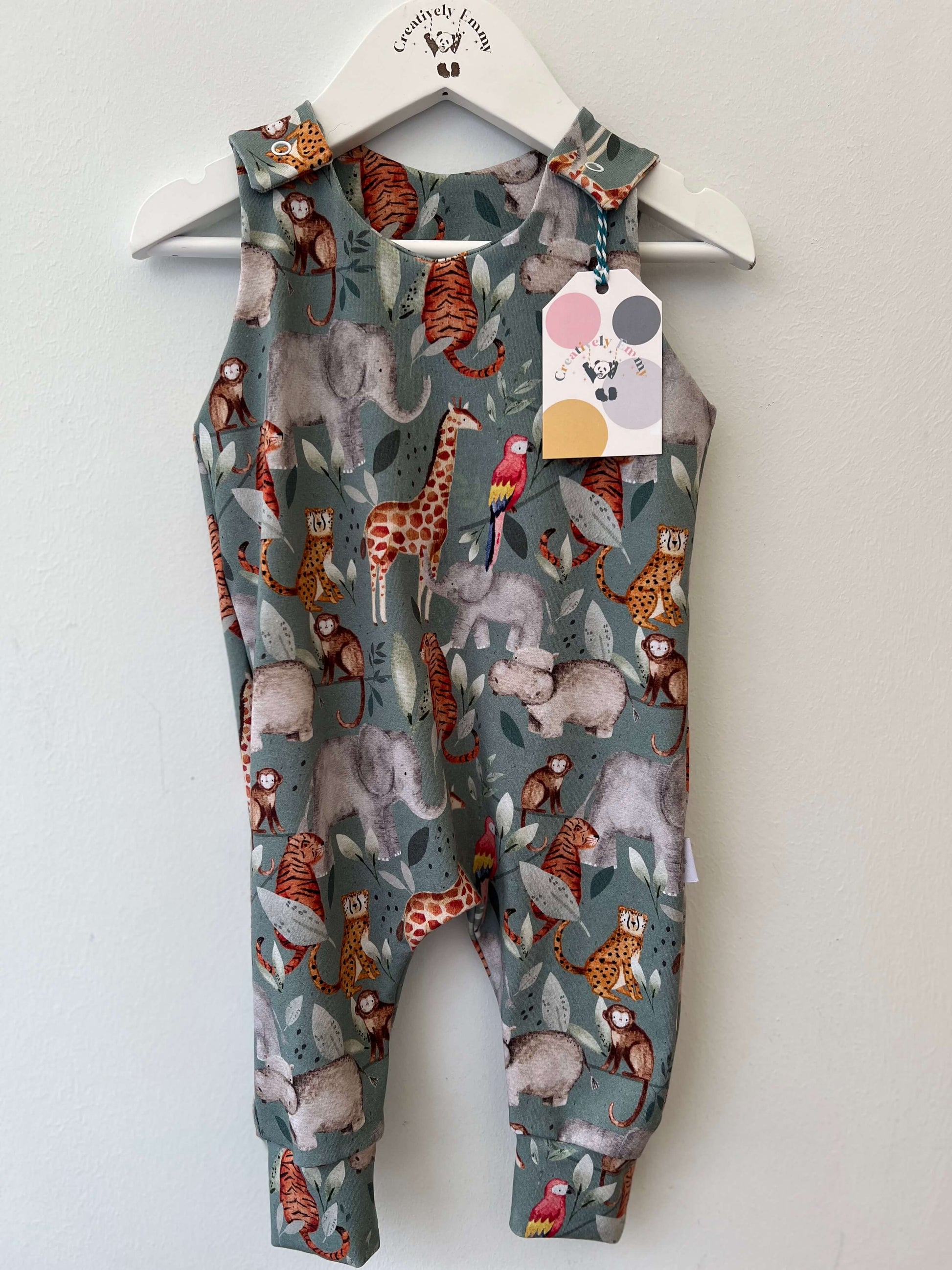 Ready-to-post: Zoo Life classic romper has long legs, cuffs, and metal snap fastenings at the shoulder. Cotton Jersey fabric (95% cotton, 5% elastane)